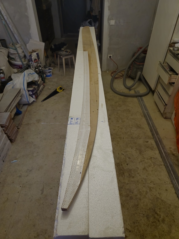 этот гребень по очень важная деталь. при вакумной формовки мягкий пенопласт может сжать и изменится профиль доски. По этому , из куска дсп был сделан контр профиль, он сохранит форму во время вакуумации.