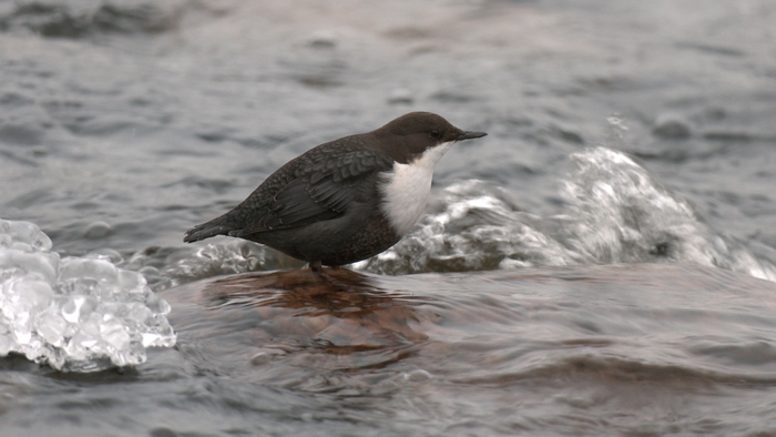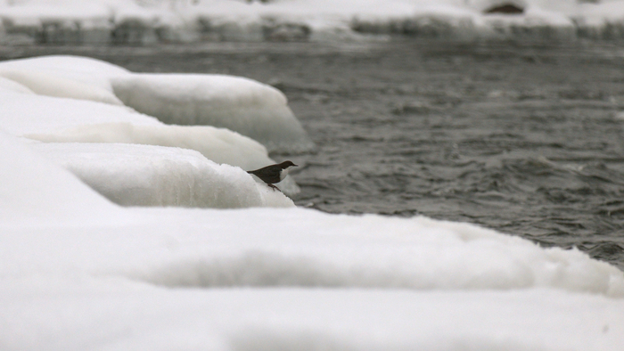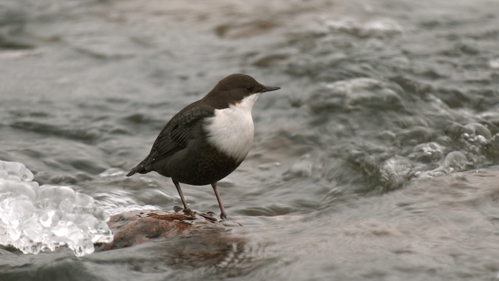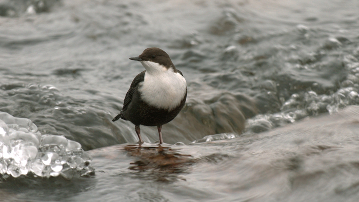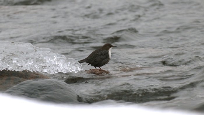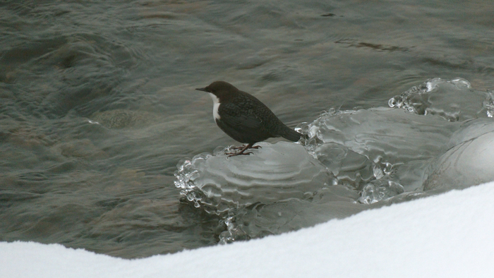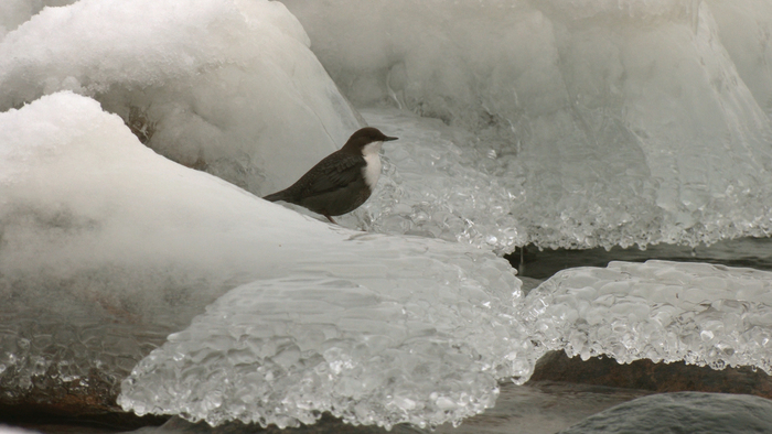 Научное название этого симпатичного пернатого — оляпка или водяной воробей. Оляпка — небольшая бурая птичка с белым передничком — единственная из воробьиных, которая способна плавать, и даже нырять! Под водой она может находиться до полуминуты! Водяной воробей круглый год живёт в наших краях на берегах быстротекущих, не замерзающих рек. Оляпка не спроста ныряет в сильное течение: под водой она раскрывает крылья, и течение буквально прижимает её ко дну. Здесь она ищет водных насекомых – своё излюбленное лакомство. Невероятно, в большом течении она способна даже бегать по дну. А когда оляпка прижимает крылья к себе, вода, словно кусочек пенопласта, выталкивает её на поверхность. Стремительно выскочив из воды абсолютно сухой и съев очередное насекомое, птичка исполняет свою мелодичную песню. Оляпка — редкий обитатель наших мест, она занесена в Красные книги Санкт-Петербурга и Ленинградской области.Приозерский район Ленинградской области.
