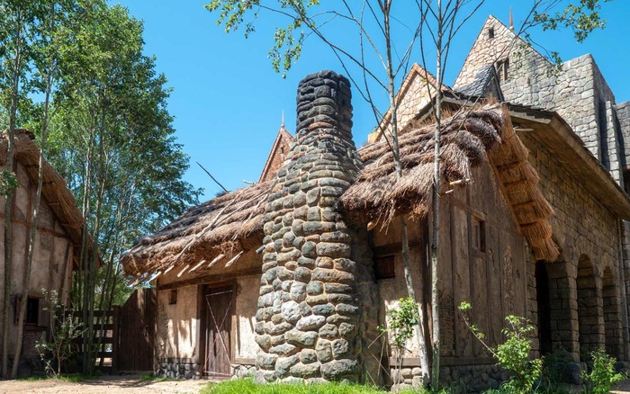 и «Русский средневековый город», который стал собирательным образом Древнего Киева, замка епископа Роже в Нормандии, скульптурами на крепостных стенах и башнями.