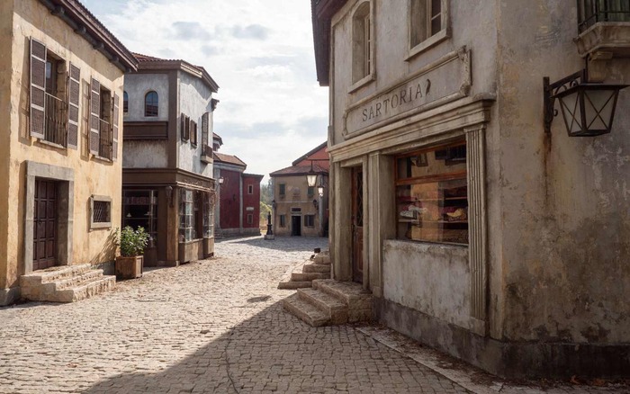 «Провинциальные города Европы» - площадка, изображающая итальянский городок с мощеными улочками, школой, булочными, книжными лавками, церковью, а также театром с настоящей сценой и зрительным залом, двориком с фонтаном и росписями на стенах.