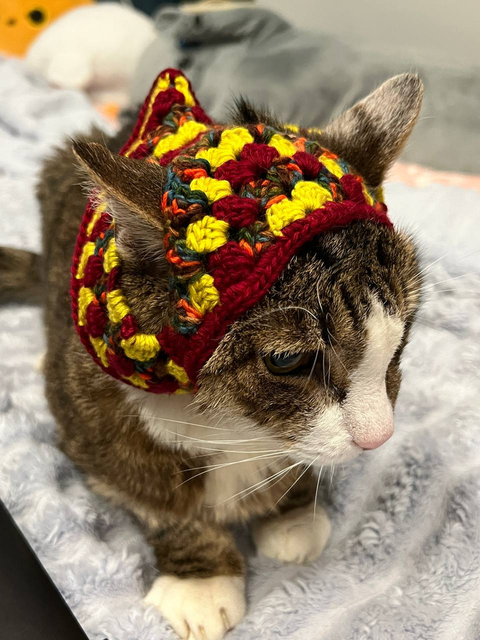 Еще где то увидела связала шапочки котам, коты не то что бы довольны...🤣