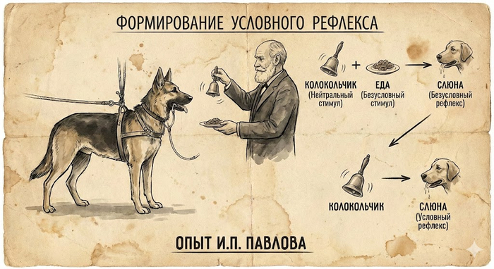 Он доказал, что мозг может учиться на опыте, формируя новые связи. Звонок (нейтральный сигнал) → еда (безусловный стимул) → слюна (рефлекс). Повтори много раз, и у собаки слюна будет выделяться уже на один звонок. Это и есть условный рефлекс.