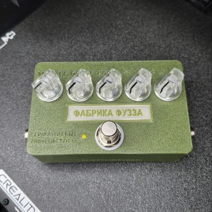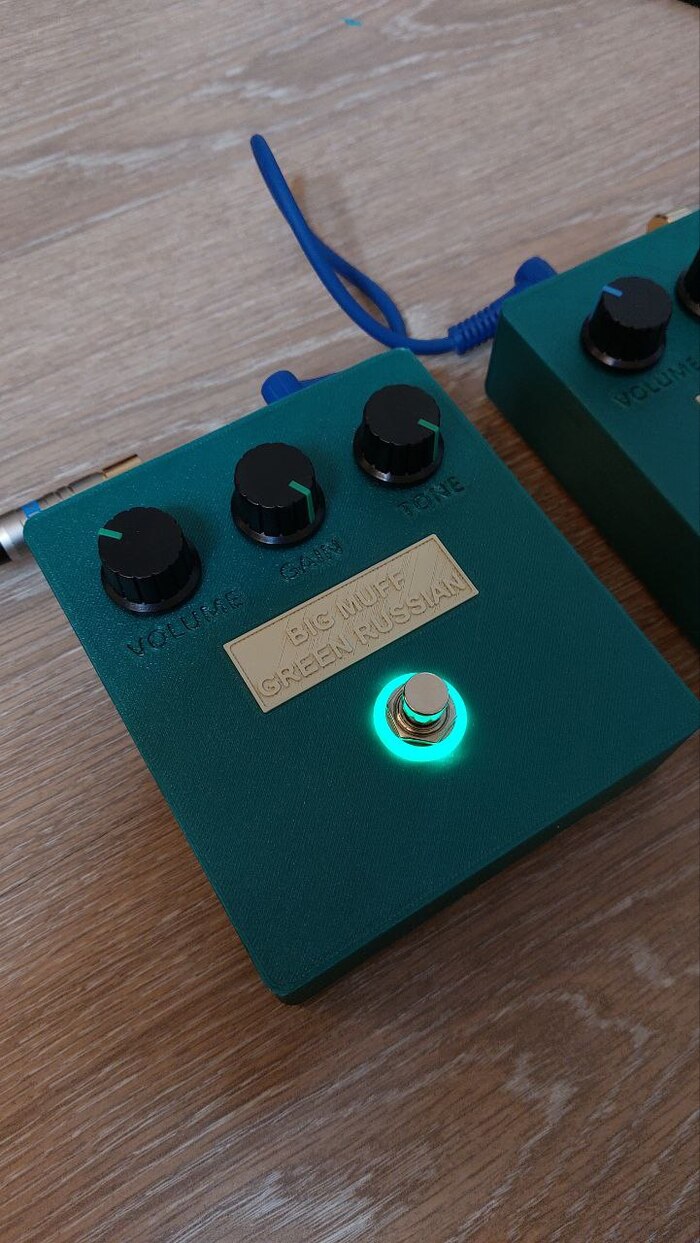 А вот ещё нестандартный корпус - собирал в подарок учителю музыки и себе заодно копию Sovtek Big Muff Green Russian. Задача была повторить максимально точно: те самые компоненты насколько это возможно и та самая трассировка платы. Поэтому корпус получился большим: