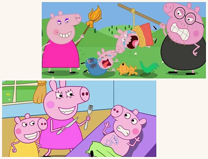 Меня он, честно говоря, раздражает визуально, но как оказалось, не зря и это "Свинка Пеппа". Если вы не вдавались в подробности, то обратите внимание, как во многих сериях, Пеппа постоянно высмеивает своего отца, он не пользуется авторитетом в семье, а истерики показываются здесь, как способ общения. Дети не копируют мораль, которую обычно указывают в конце мультфильмов, дети копируют поведение главных героев.
