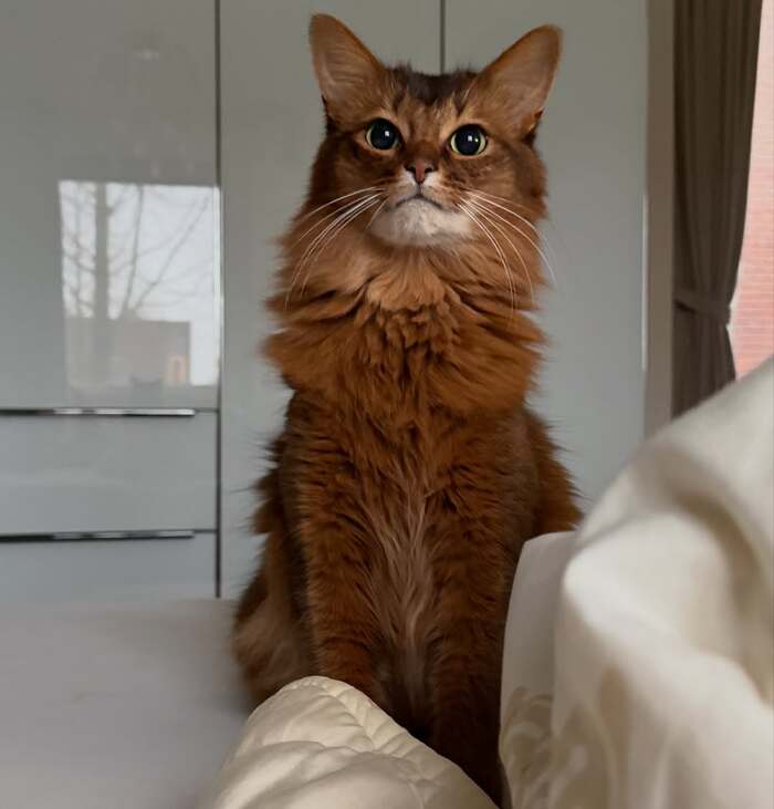Среди рассматриваемых и доступных пород нам понравилась сомали (длинношерстные абиссинцы, считается что получились в середине прошло века вследствие ошибки при разведении абиссинцев). Я нашла питомник у которого был понятный сайт, каждый помёт был с датой рождения, общей фотографией помёта и персональными фото котёнка, указаны родители-производители котят и их награды, указано какой котёнок в резерве, какой свободен, какой выпускник:) На ютубе мы смотрели много видео с выставок, и оказывается там же я видела именно этого заводчика презентующего сомали. Подход к делу мне понравился и я поехала на знакомство. Предварительно заводчик прислала мне видео каждого свободного котёнка. Очаровательные абсолютно все! Но....