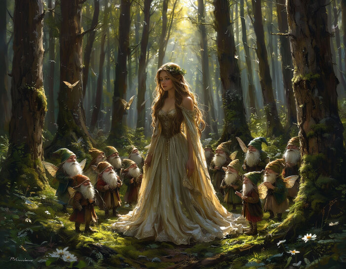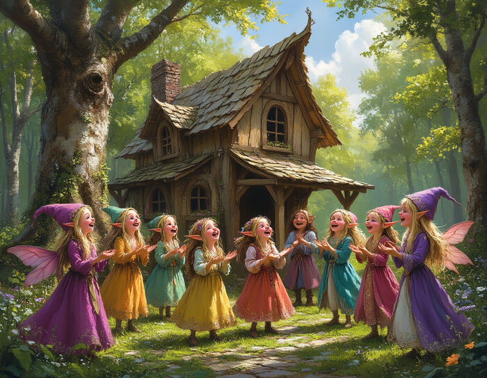Однажды, гуляя по Волшебному Лесу, Лиза забрела в самую его чащу. Там, среди вековых дубов и мерцающих папоротников, она увидела нечто удивительное. В воздухе кружились крошечные, светящиеся существа, похожие на бабочек, но с прозрачными крылышками и крошечными коронами из росы. Это были феи Волшебного Леса!
