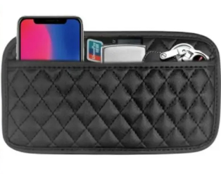Автомобильный карман из искусственной кожи предназначен для хранения мелких предметов в зоне переднего сиденья. Формат подходит для размещения телефона, ключей, карт и других повседневных аксессуаров.
