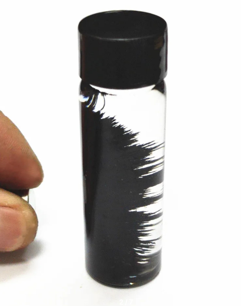 Стеклянный корпус подчеркивает визуальные изменения и подходит для размещения на рабочем столе или полке. Феррофлюид востребован среди любителей необычных физических эффектов и интерьерных акцентов.