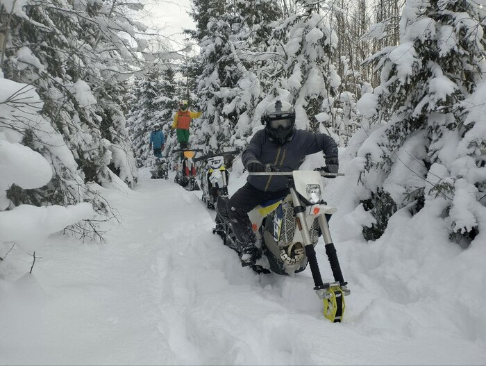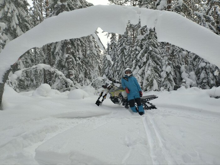 Запилил сноубайк комплект Monotrack Tasman для эндуро мотоциклов 200-450 куб.см. с большим зацепом, широкой гусеницей и широкой лыжей для глубокого снега.