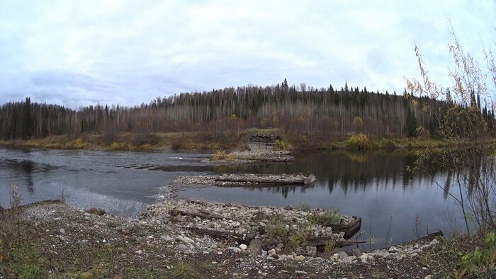 Удобных мест для стоянки очень мало. Русло извилистое, но расстояния от поворота до поворота приличные. Регулярно встречаются острова по центру русла, большей частью, видимо, искусственного происхождения, некоторые укреплены бревнами. Берега обрывистые, поросшие кустами или лесом, много где можно приткнуться, но вытащить лодку сложно. Романтических песчаных пляжей нет, от слова вообще. Грязюка, камни, травка. Лес хвойный, в основном елка, встречаются кедры. По берегам много рябины. Ниже по течению кедров меньше, березы больше.