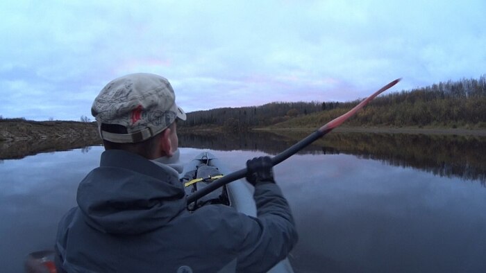 Ничего интересного здесь, в нижнем течении, не встречается. Я машу веслом и работаю на результат. Пока не разогрелся, плечи немного дают о себе знать, но затем втягиваюсь в ритм.