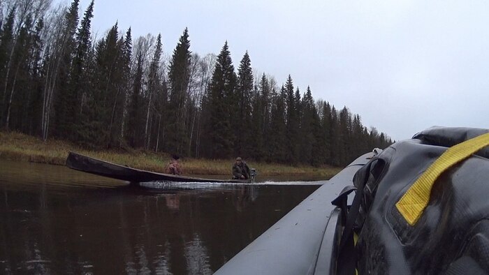 Туман теперь не висит на уровне макушек деревьев, а стелется по поверхности. Около 10 часов подходит лодка с парой рыбаков или охотников, не разберешь, поболтать. Вообще, приезжие, встреченные на реке любопытны, доброжелательны и охотно участвуют в разговоре. Местные более настороженны.