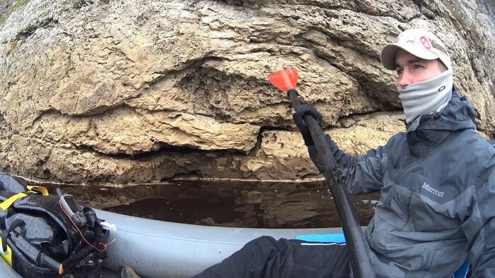 В некоторых местах на лодке можно подойти вплотную к каменной стенке, ноздреватой, как лепешка.