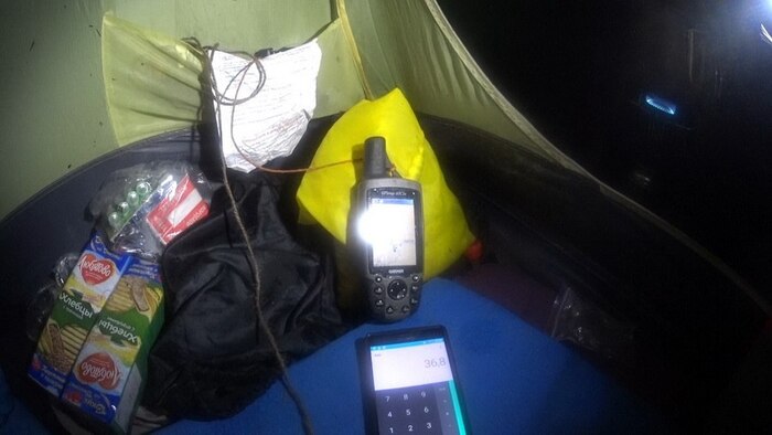 Я уже более-менее представляю, как иду, и, судя по карте в навигаторе завтра должен финишировать, поэтому роскошествую, и на обед варю двойную порцию супа).
