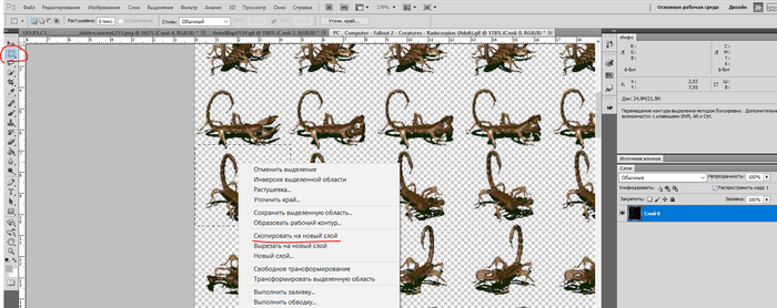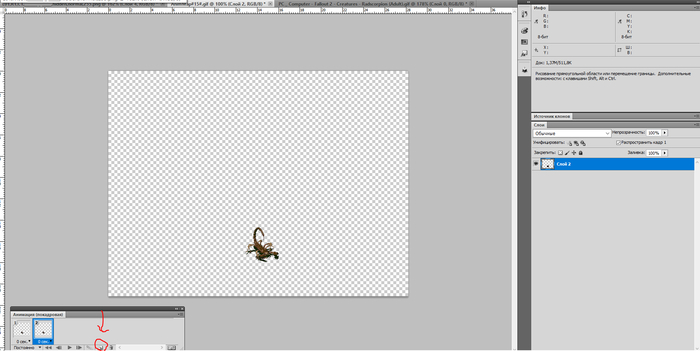 Далее идем нарезать кадры для скорпиона. Для начала уберем лишний черный фон. Правой кнопкой мыши кликаем на единственный фоновый слов и убираем его с заднего плана.