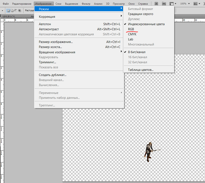 Открываем анимацию и видим, что у нас всего 1 кадр, да ещё и режим индексирования цвета. Надо исправлять.