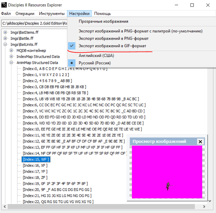 ВАЖНО!!! Измените формат в который будете извлекать анимации. Нас интересует только GIF.