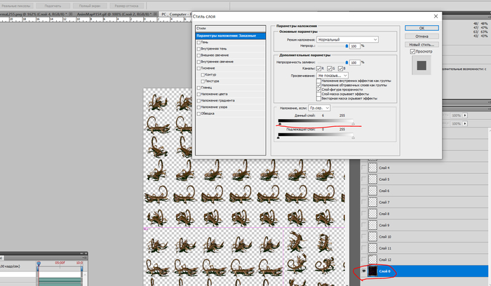 Размещайте также ваши кадры поверх извлеченных и сохраняйте с другим именем. Не забываем пронать через энкодер, чтоб индексировать цвета.