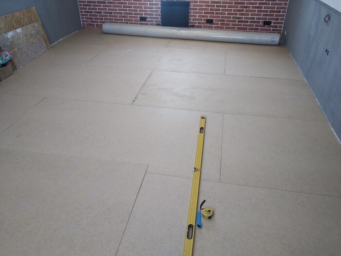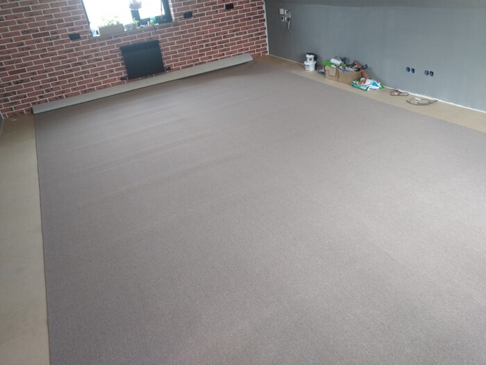 Теперь пора коврового покрытия (купил коммерческий с жестким ворсом), под него постелил оргалит (как показала жЫзнь - это ошибка, лучше делать фанеру).