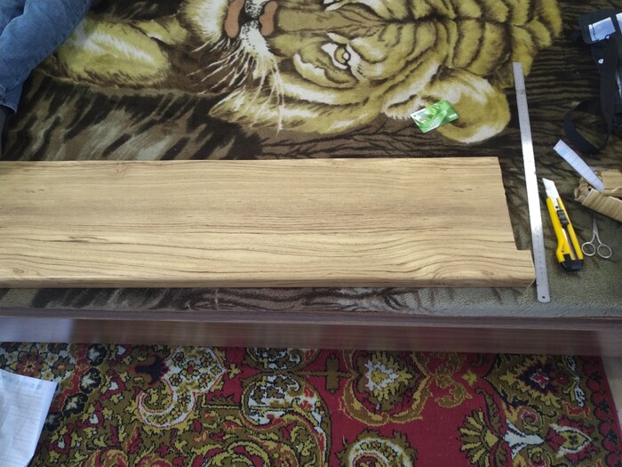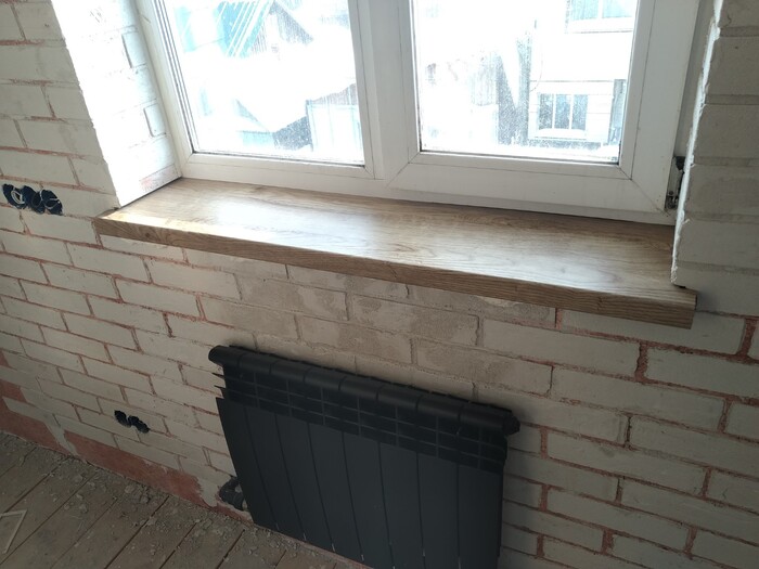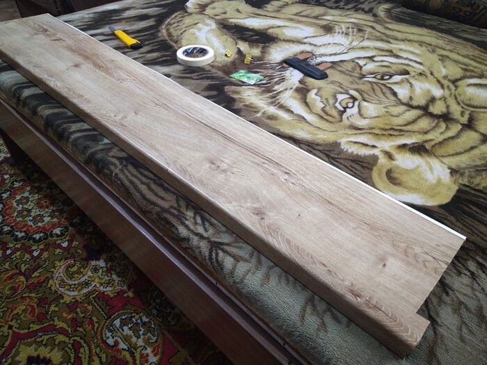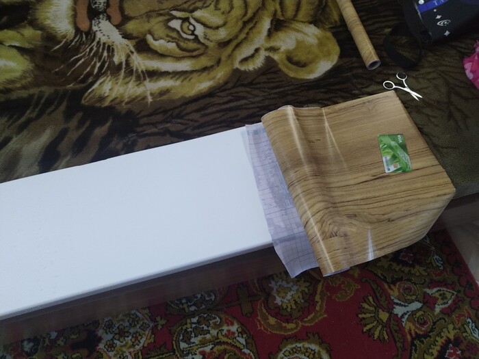Продолжим установкой подоконников, так как хотелось под дерево, купил пленку и перетянул.