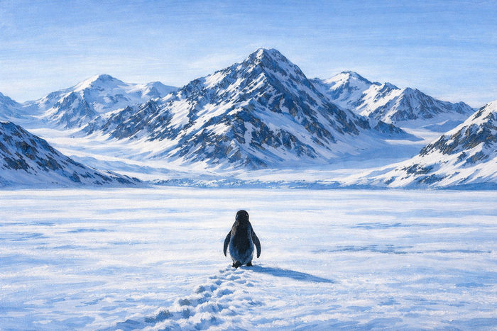 Пингвин, уходящий в одиночку, становится образом человека, который решается на этот шаг. Не из протеста. Не из желания доказать что-то другим. А потому что иначе он перестаёт быть собой. Возможно, он даже не до конца понимает, чего именно хочет. Но он абсолютно уверен в том, чего он больше не хочет.