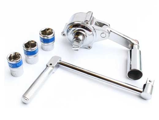 Ключ для умножения крутящего момента предназначен для облегчения откручивания и затяжки крепежа с высоким сопротивлением. Механизм увеличивает прилагаемое усилие, снижая физическую нагрузку при работе с колесными гайками и болтами. Инструмент используется при обслуживании автомобильных шин, грузового транспорта и спецтехники.