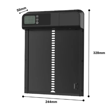 Автоматическая дверь ATUBAN предназначена для управления доступом в курятник без ручного вмешательства. Встроенный таймер и дисплей позволяют задавать время открытия и закрытия в зависимости от режима содержания птицы. Конструкция рассчитана на эксплуатацию на улице при изменении погодных условий.